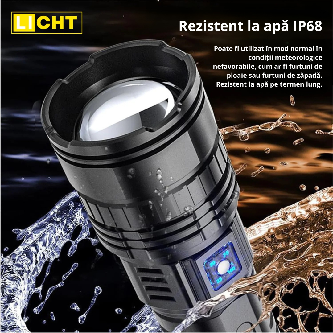 Ploaia sau zăpada nu mai reprezintă o problemă. Cu designul său rezistent la apă cu clasificare IP puternică, această lanternă îți garantează funcționare optimă în orice climă. Fabricată din materiale durabile, este ușoară pentru a o purta și sigură de utilizat, chiar și în cele mai reci condiții meteorologice. Nu lăsa vremea rea să îți pună în pericol siguranța.